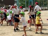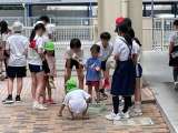 7月10日月曜日、5歳児の子どもたちが西船場小学校に行き、6年生と一緒に水鉄砲や...