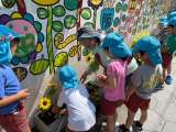 幼稚園の園舎の南側、本町通りに面した花壇にお花を植えました。西区役所の「種から育...