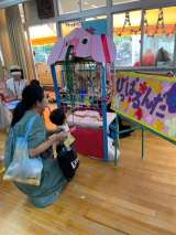 水鉄砲で遊びました。水を入れるのを手伝ってくれたり、的の後ろにいて楽しませてくれ...