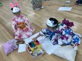 ここはお面作りコーナーです。 それぞれに作りたいお面を選び、材料を選んでいました...