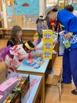 ここは駄菓子屋さんコーナーです。自分で袋に詰めていくのがとっても楽しかったようで...