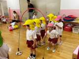 遊戯室でサーキット遊びをしています。いろいろな動きをすることができるように先生た...
