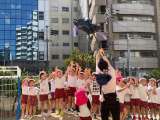 ゴムくぐりが人気で順番待ちの列が出来ています。いろんなくぐり方にチャレンジしてい...