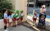 今日から1週間、年長うめ組とゆり組のお当番さんが門に立ち、クラスでつくったオリジ...