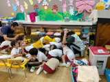 今日の年中さんは、運動会のジャングルのグレードアップをしました。 絵の具で色を塗...