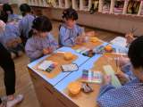 4歳児ばら組すみれ組は、恐竜のお面を作っていました。出来上がった子どもは早速お面...