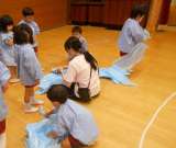 4歳児は運動会に向けて、かけっこ、ひっくり返しゲーム、サーキット遊びをして遊んで...
