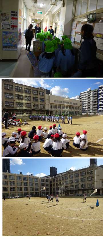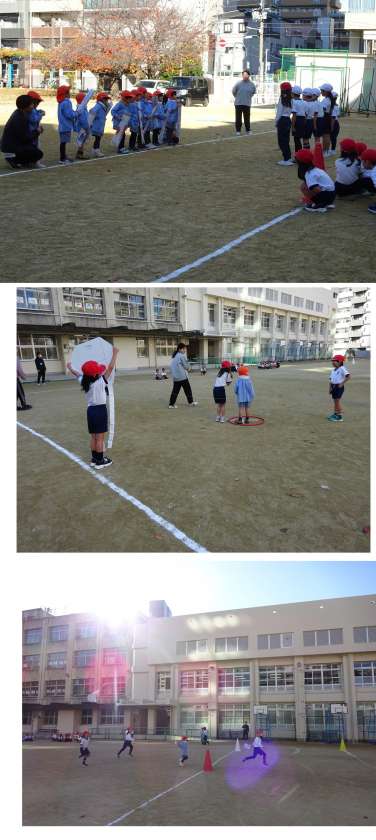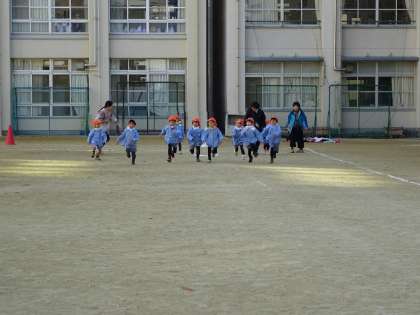 今日、日吉小学校へたこあげに行きました。 先ずは、4歳児りす組です。 小学校で、...