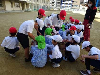 りす組が幼稚園に戻ると、今度は5歳児らっこ組が小学校へ! 先ず、出迎えてくださっ...