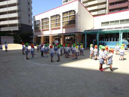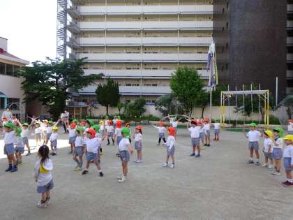 ちなみに、日吉幼稚園の子どもたちのクラス帽子の色をご覧ください。