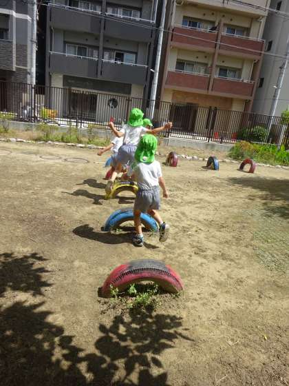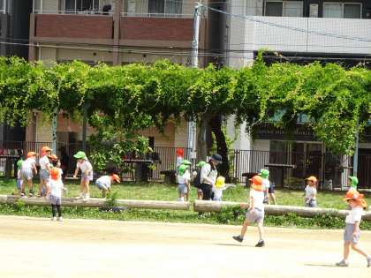 日吉小学校に行ってきたよ! その2 公開日 2024/06/03 更新日 2024/06/03 幼稚園日記 「うわー!広ーい!」と校庭でも思わず走り出した子どもたち。息が切れるほど、存分に走りました。 また、タイヤの遊具を見つけると、すかざずに上に乗ったり跳んで渡ったり・・・ 丸太の上では、落ちないように歩いたり、上で出会うとジャンケンをしたり、しばし友達と一緒に座ってほっこりとしたり・・・・と、とにかく広い空間で開放感をいっぱい感じて、体を動かして遊びました。 いいね(0)