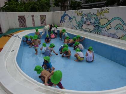 らっこ組にとっては、幼稚園最後のプール遊び!