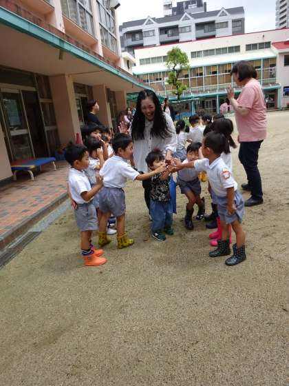 最後は、小さなお友達にタッチをして見送りました。お互いに名残惜しそうでしたね。