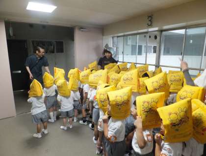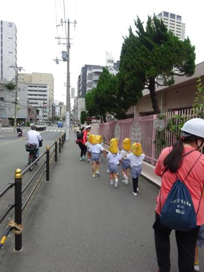 初めての園外への避難訓練でしたが、子どもたちは落ち着いて安全に行動できていました。