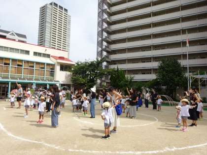 そして、降園前にお家の方と一緒に「にこにこ なかよしさん体操」をしました。