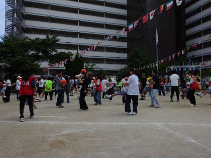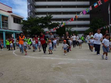 全園児と保護者で日吉幼稚園の園歌に合わせて、「にこにこなかよしさん体操」をしました。