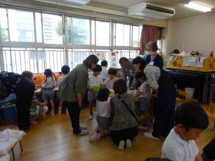 4歳児りす組は、保育室で、クラスみんなのおじいちゃん、おばあちゃんとお顔を合わせました。