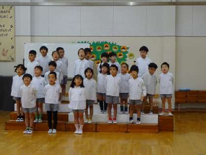 らっこ組の歌声はとても大きく、でもきれいで、あんなに高い声もでるのかと驚くほどでした。りす組もひよこ組もその歌声にじっと耳を傾けて聴いていました。