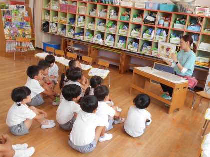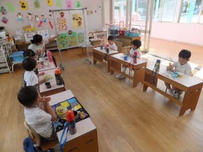 大きくなるために!強い体を作るために!いろいろな食べ物を食べよう〜というお話です。みんな興味津々で紙芝居を見ていました。