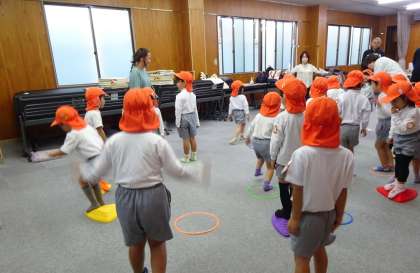 日吉会館子育てサークル訪問 公開日 2024/11/12 更新日 2024/11/12 幼稚園日記 今日、4歳児りす組が日吉会館子育てサークルを訪問しました。 小さなお友達や地域の方に迎えられ、りす組の子どもたちも一緒に遊ばせてもらいました。 ヨガのお姉さんに絵本を見せてもらったり、体を動かして遊んだり・・・・ 最後は、小さなお友達や地域の方に歌を聴いてもらいました。とても楽しかったです。 今度は、幼稚園に遊びに来てくださいね♪ いいね(0)