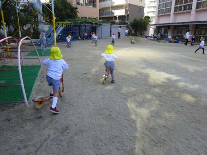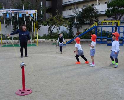 全園児が園庭で体を動かして、いろいろな遊びを楽しんでいました。