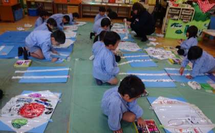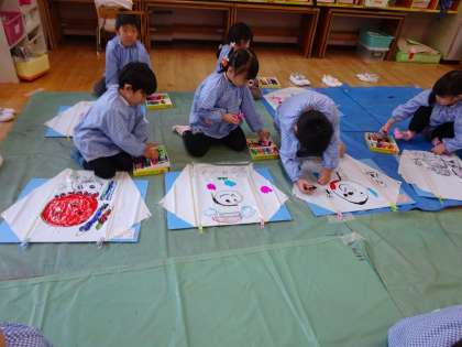 もうすぐ凧揚げ 公開日 2024/12/03 更新日 2024/12/03 幼稚園日記 来週、日吉小学校へ凧揚げにいきます。 4歳児りす組では、大きなビニール凧に絵をかいて楽しみにしていました。 凧に絵をかきあげると、今度は、長ーいビニールが・・・・ 「凧に足?」と、初めて凧を見る子どもは不思議そうに、でも、期待しながら「足」にも絵をかいていました。 そして、よーく見てください。凧に蛸の絵も・・・・ 大空に蛸の絵をかいた凧が上がることを楽しみにしていますね♪ いいね(0)