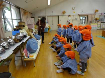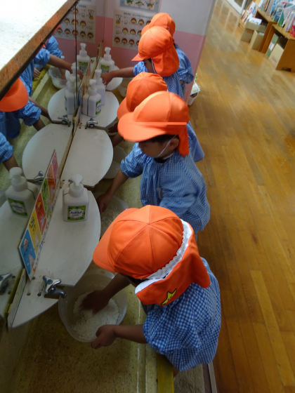 5歳児らっこ組と4歳児りす組はもち米を研ぎました。ひよこ組はそれ見せてもらいました。