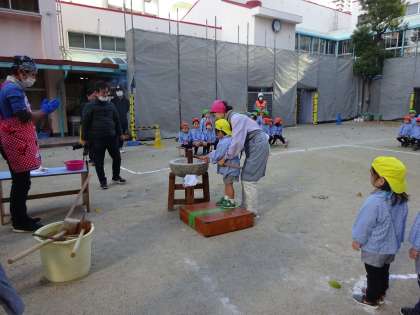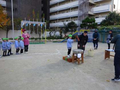 おもちつき3 公開日 2024/12/06 更新日 2024/12/06 幼稚園日記 いよいよもちつきです! ときどき、お手伝いもしていただきながらおもちをつく3歳児ひよこ組。 4歳りす組、5歳児らっこ組は自分の力で、しっかりとついていました。 いいね(0)