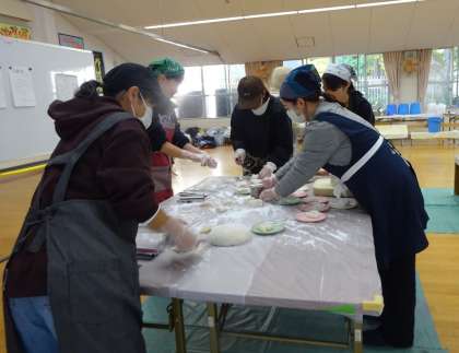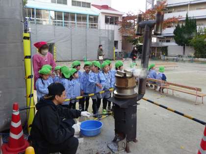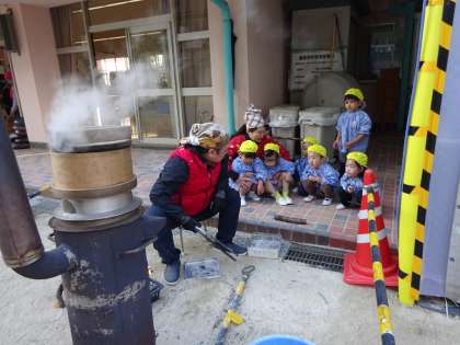 おもちつき4 公開日 2024/12/06 更新日 2024/12/06 幼稚園日記 ついたおもちは、おかあさん方が切ってくださいます。 まるめる準備ができるまで、かまどのそばで火が燃えている様子を見たり、暖を取ったりしました。 いいね(0)