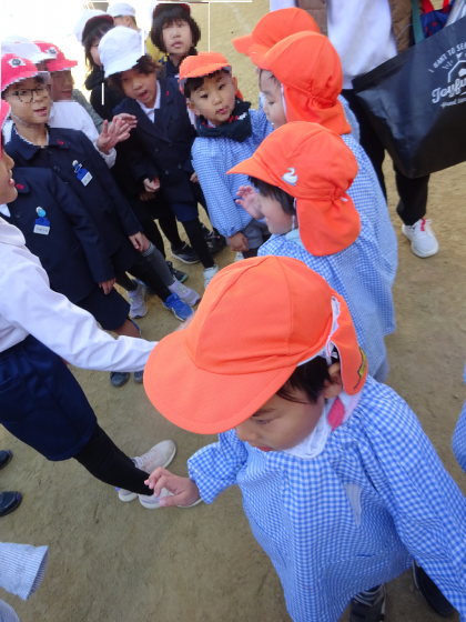 たこあげ(りす組)4 公開日 2024/12/11 更新日 2024/12/11 幼稚園日記 たこあげの時間は、あっという間に過ぎてしまいました。 どうでしたかと尋ねると、りす組の子どもたちからは「一緒にたこあげして楽しかった」 「走って楽しかった」「一緒にたこの話をして楽しかった」という声が聞かれました。 「また来てね」と声をかけてもらいながら、さようならをしました。 来た時よりも心の距離が縮まりました。 1年生のみなさん。ありがとうございました。 りす組より いいね(0)