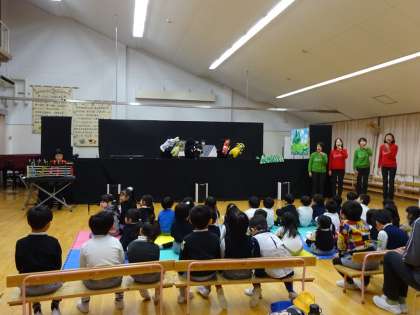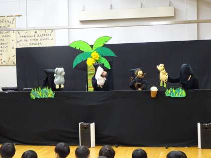 今日、「きっずシアター かみふうせん」さんをお招きして、人形劇を楽しみました。