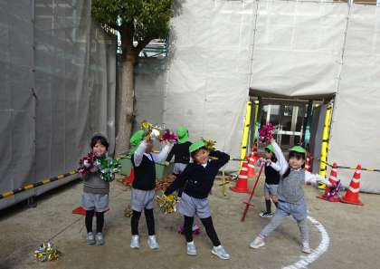 5歳児らっこ組は12月の終わりからダンスが始まっていたのですが、なんとこの寒い中でもとびっきりの笑顔、ポーズで楽しんいました♪