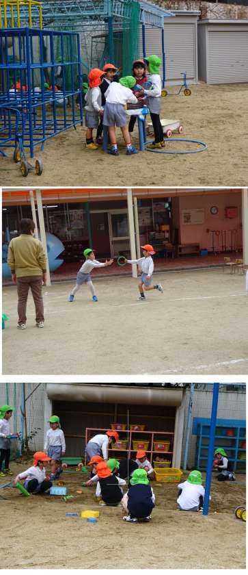 いろいろな遊びの中に「入れて」を言う必要もなく、自然に(当然のように)、みんなが入って遊んでいました。何をして遊ぶでもなく、みんなが集まってきての井戸端会議もとても楽しそうでした。