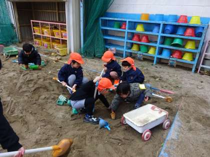 その後は、あの寒風吹きすさぶ中を、元気に外で遊びました。(遊戯室でも遊具を準備していたのですが・・・・)