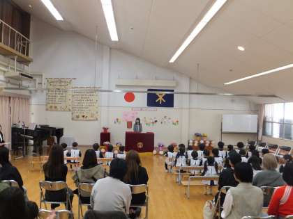 始業式でも、にこにこ笑顔でしっかりと話を聞き、お家の人の方を見て、かわいらしい歌声も聴かせてくれました。