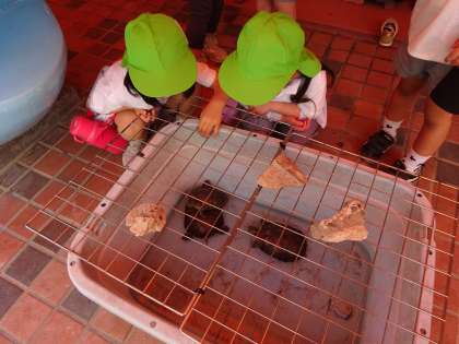カメさんが起きてきたよ! 公開日 2025/04/18 更新日 2025/04/18 幼稚園日記 以前、HPにて、小さなカメがまだ葉っぱの中で寝ています・・・とお知らせしていましたが、昨日、ごそごそと起きてきました。 今日、3匹のカメが水槽にいることを発見した子どもたちは「いつ、起きてきたん?」「どうやって、起きたん?」と興味津々。 3歳児、4歳児はこれまでもカメを見ていたので、すぐに気付いたのですが、通りがかりに見た5歳児も「あれっ?」と、早速、覗いていました。 冬眠って不思議ですね。 いいね(0)