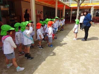 幼稚園に戻ってから、お互いに感想を尋ねると、らっこ組は「坂道が怖かったけど、(りす組は)上手に歩けてた」 りす組は「らっこ組さんと歩いて楽しかった」という言葉が聞かれました。