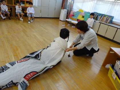 尻尾から入り、口から出てきた子どもたちは、大喜び!