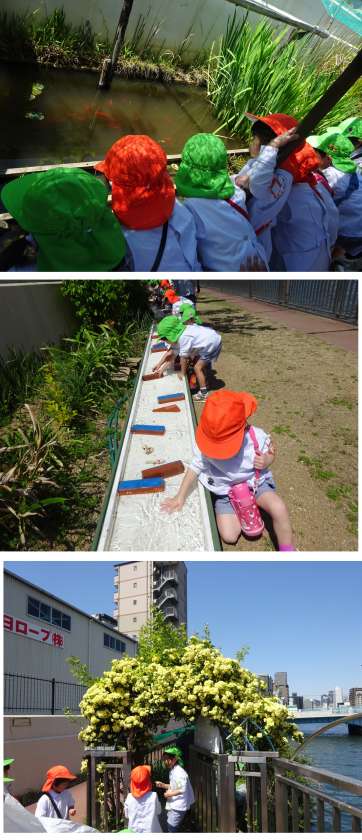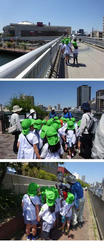 5歳児らっこ組と4歳児りす組で午後からアドプトリバーへお散歩にでかけました。