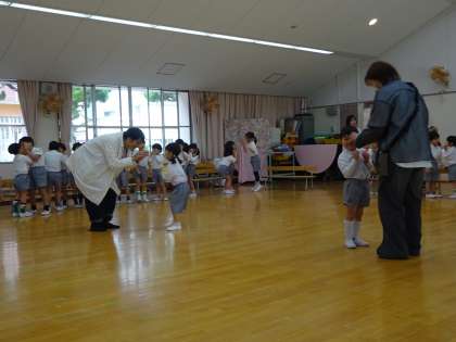 4月誕生会 公開日 2025/04/25 更新日 2025/04/25 幼稚園日記 今日は4月の誕生会がありました。 4月の誕生児は、新入園児の2名。しかも3歳児と4歳児! 新年度の初めての誕生会は、5歳児や進級児の誕生児がリードしてくれるのですが、今回は経験のないふたりが、入場や自己紹介など、とてもがんばりました。 その後は、先生からのプレゼントの大型絵本を見たり、誕生児とお家のふれあい遊びをしたりし、楽しく過ごしました。 みんなも、自分の誕生会を楽しみにしていてくださいね。 いいね(0)