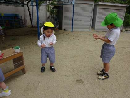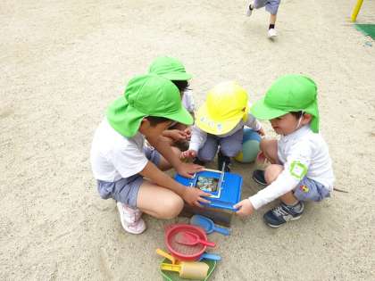 幼稚園のお庭には不思議なことがいっぱいですね。