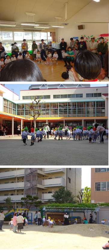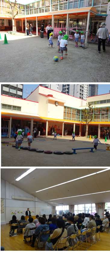 3クラスそろっての体操やなかよし遊び、それぞれの好きな遊び・・・と、子どもたちが少しずつ新しい環境に慣れ、楽しく遊んでいる様子も見ていただきました。