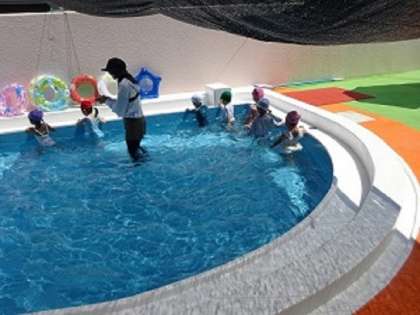 27日にプール開きをおこない、いよいよプール遊びが始まりました。