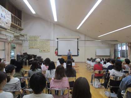 その後、保護者向けにもお話をしてくださり、改めて交通事故の恐ろしさや交通ルールを守ること、安全に行動することなど教えていただきました。
