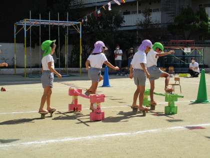 10月1日、運動会をしました。青空のもと、元気いっぱいの子ども達の姿を、お家の方に見ていただきました。子ども達の、楽しそうな笑顔と、力いっぱい頑張る姿が、うれしかったです。みんな、最後までよく頑張ったね!最後は、金メダルをもらって、キラキラ笑顔の子ども達でした。