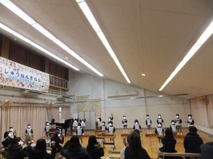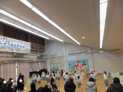 14日にらっこ組、15日にひよこ組とぺんぎん組が生活発表会を行いました。今年は保護者の方に、子どもたちの合奏や歌や劇あそびを、遊戯室で見ていただくことができました。友達と一緒に楽しんでいる姿や少し緊張しながら頑張っている姿が見られていました。生活発表会後に「楽しかった!」と嬉しそうにキラキラした笑顔で話す子どもたちに成長を感じました。保護者の方のたくさんの拍手をいただき、達成感を味わっていました。