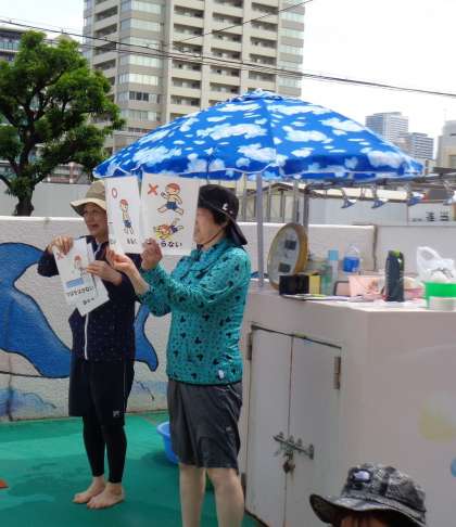 6月20日に全学年でプール開きをしました。みんなで元気に入れますようにとお願いをして、プールで遊ぶ時の約束をしました。その後、クラスごとにプールに入り、「水が気持ちいい!」「楽しい!」と大喜びでした。これからも晴れの日にはプール遊びをして、夏を存分に楽しみたいと思います。