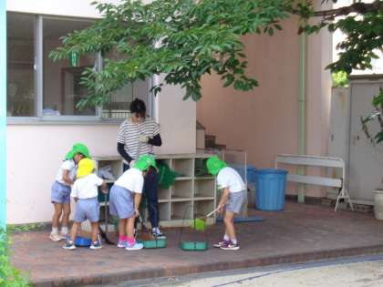 ほし組のお友だちがおもちゃを洗ったり、お掃除をして、準備してくれました。