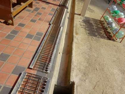 夏休みの幼稚園(側溝掃除)