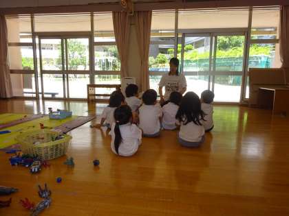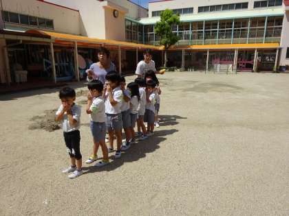 今日は、預かり保育に参加している子どもたちの避難訓練を行いました。